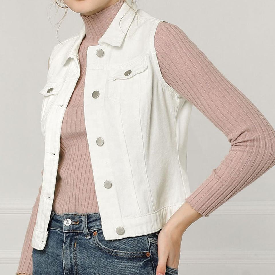 High Quality Ladies Jeans Ripped Jacket Women's Fashion Casual Cotton Denim Vest Lightweight Comfortable Windproof Outer Button