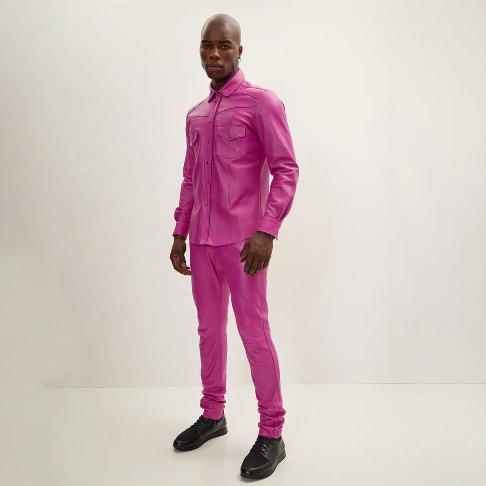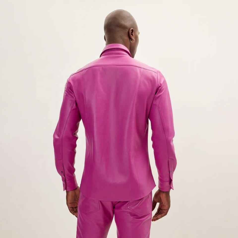 High Quality Lamb Leather Shirt for Men Slim Regular Fit Work Shirt 2023 High Quality Wholesale Unique Simple Leather Shirt