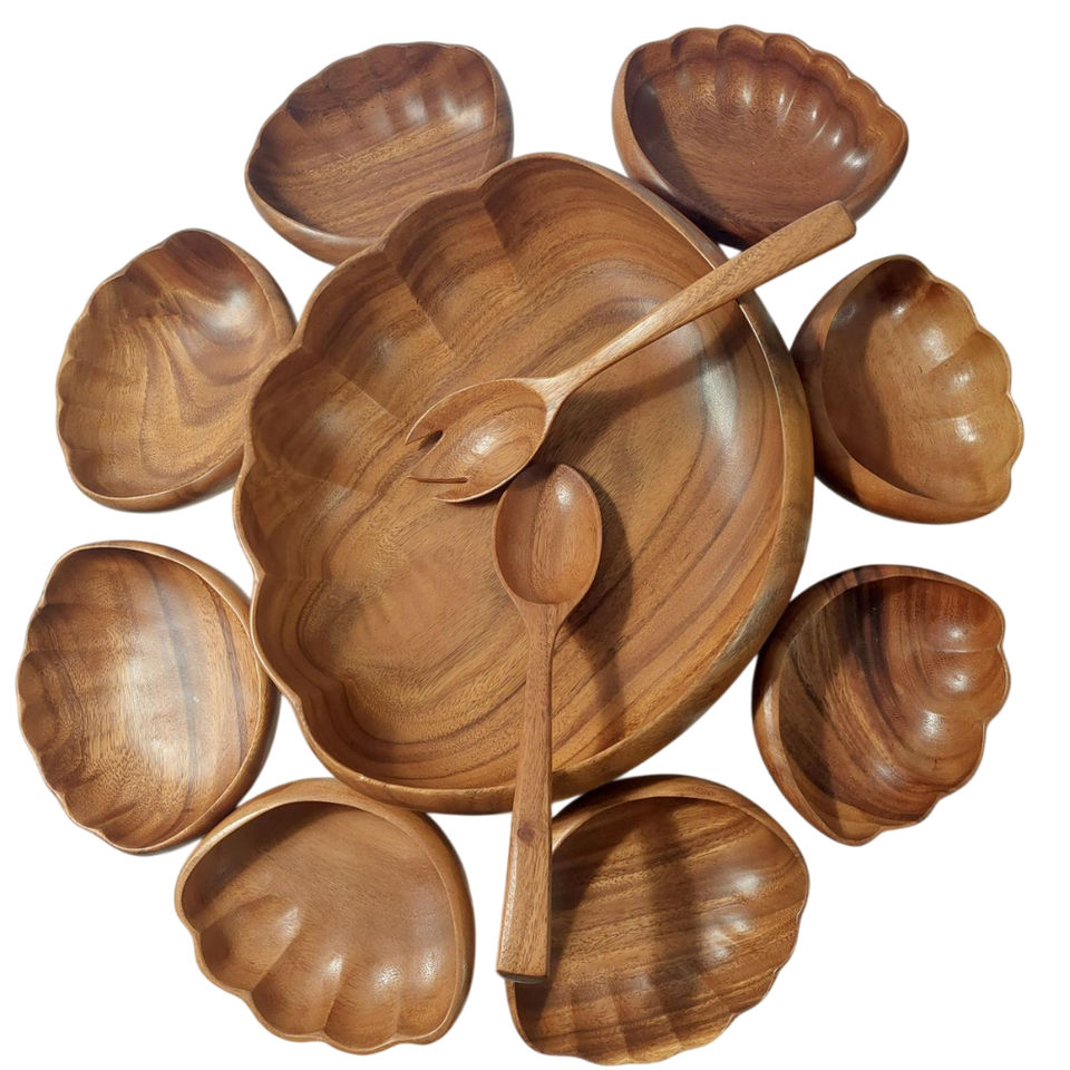 High Quality Large Acacia Wood Salad Bowl Set With Serving Utensils Natural Wooden Serving Bowl For Kitchen Dining & Home Decor