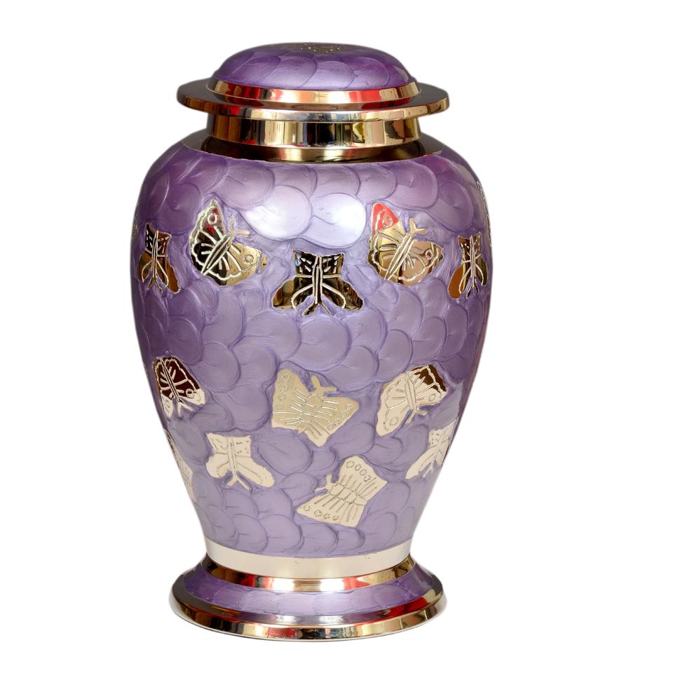High Quality Large Capacity Lavender Cremation Urn Butterflies Design Wholesale Price Sale Brass Aluminum Metal Funeral Supplies