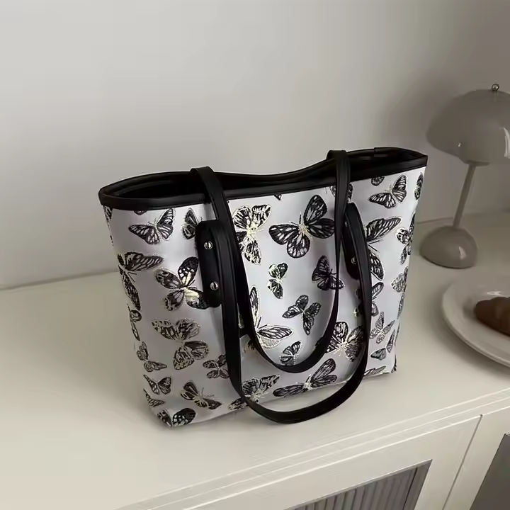 High Quality Large Capacity Korean Star Printed Shoulder Bag for Women 2025 New PU Leather Tote Bag with Zipper Closure