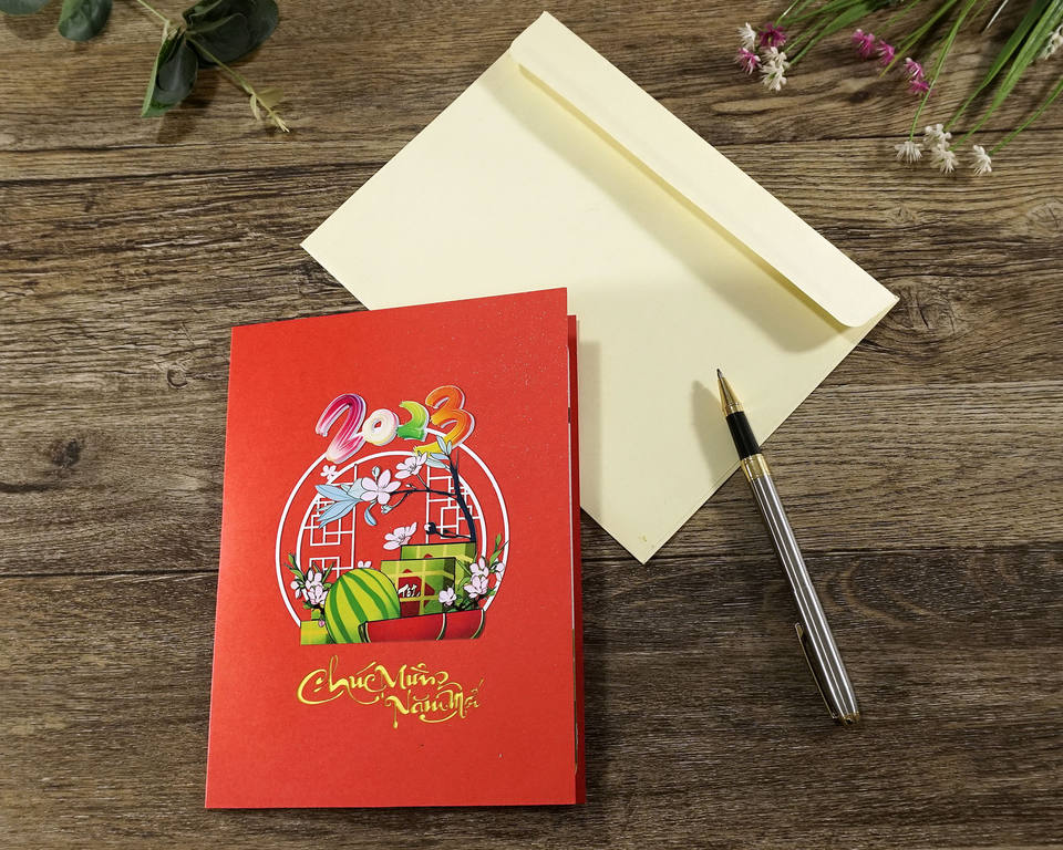 3D Cards Pop up for New Lunar Year With Envelope and Note From Vietnam HMG Supplier High Quality Handmade Paper Art