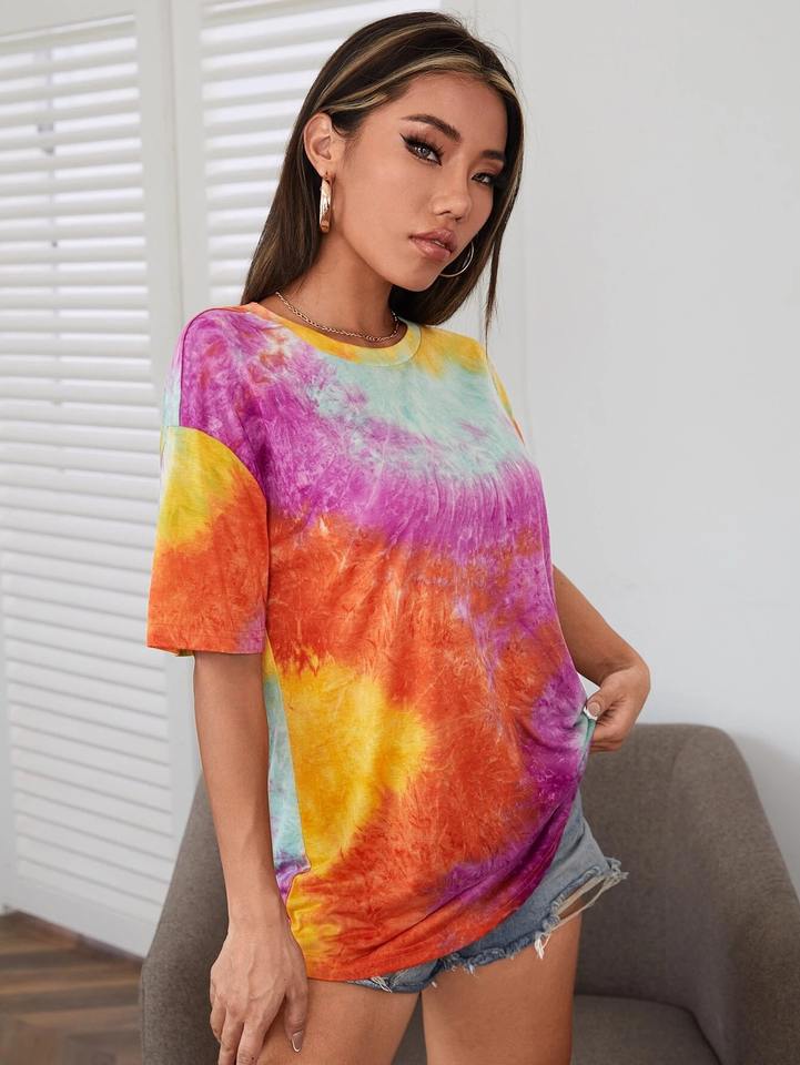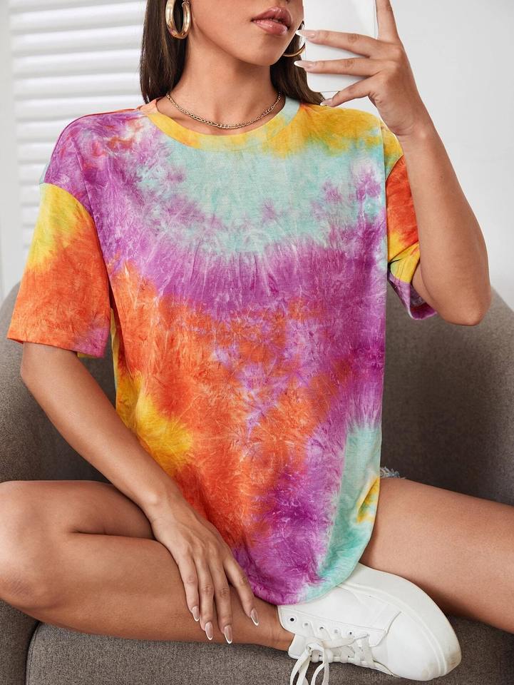 High Quality Latest Designs Loose Fit Ladies Custom Logo Women Tie Die T-Shirts 100% Polyester T-Shirt for Girls