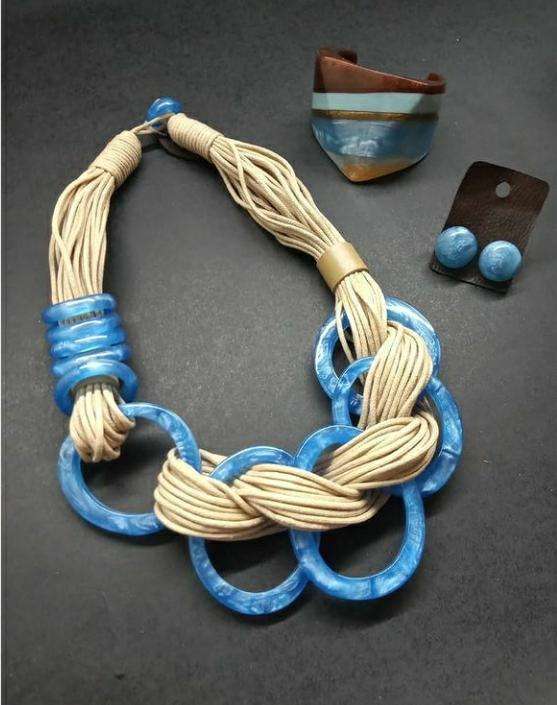 High Quality Leather Cord with Resin Multi Beads Pendent Necklace Set Jewelry Earrings Accessories Women Stainless Steel Jewelry