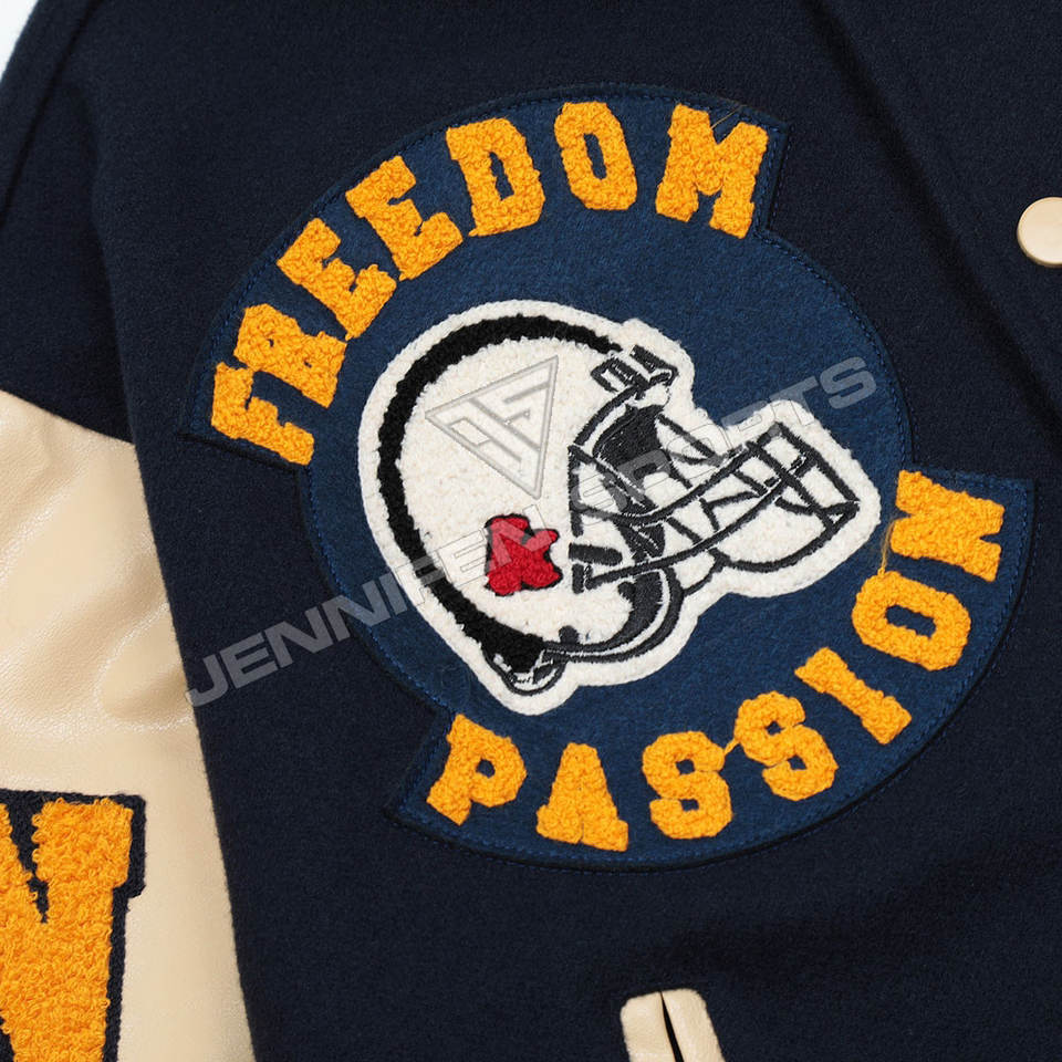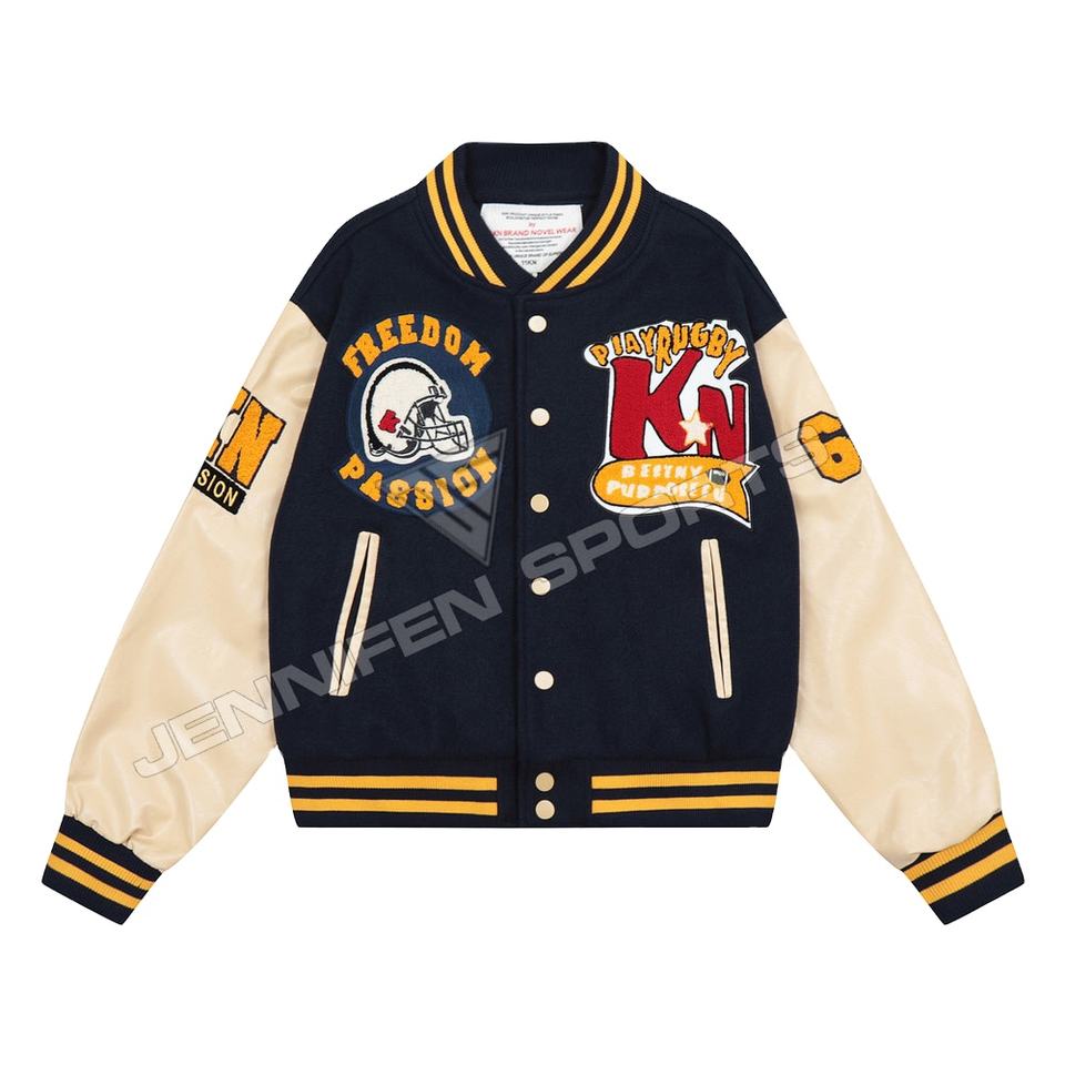 High Quality Letterman Jacket Chenillie Embroidery Patches,Wool Fabric Shell,Leather Sleeves,Button's Closing,Inside Lining