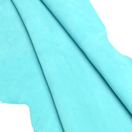 High Quality Light Blue Goat Suede Real Leather Grain Finish Pattern for Shoes and Handbags
