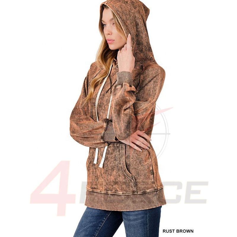 High Quality Lightweight Vintage Oversized Acid Wash Pullover Hoodie for Women Drop Shoulder Solid Style Breathable Yoga Top