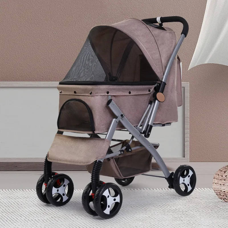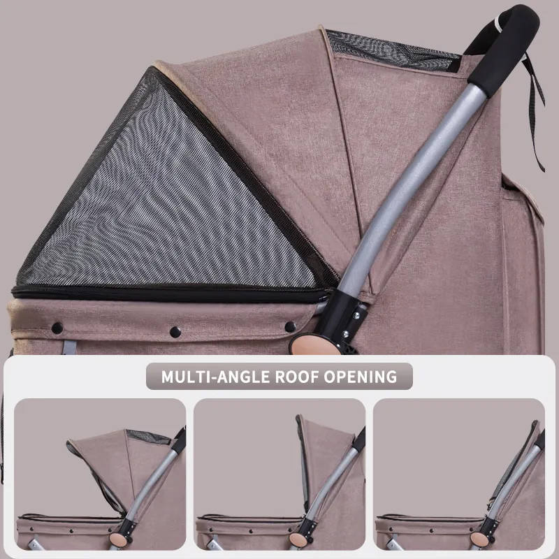 High Quality Linen Fabric Pet Supplies Dog Stroller Luxury 4 Wheels Pet for Dog 2023 New Design