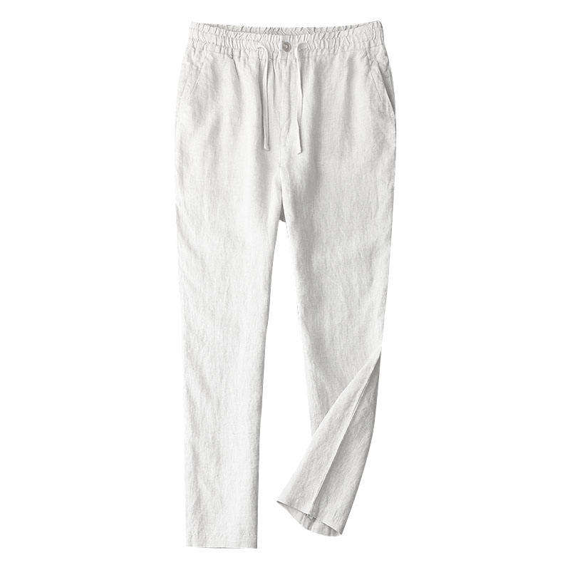 High Quality Linen Trousers for Men Comfortable Casual Custom Logo Oversized Loose Elastic Waist Lightweight Pure Linen Pants