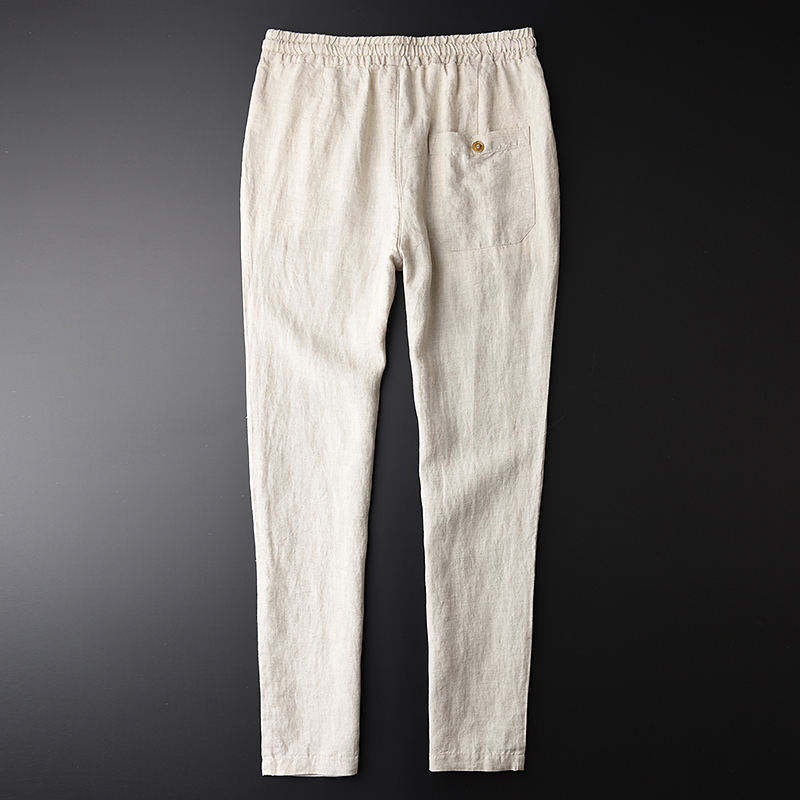 High Quality Linen Trousers for Men Comfortable Casual Custom Logo Oversized Loose Elastic Waist Lightweight Pure Linen Pants