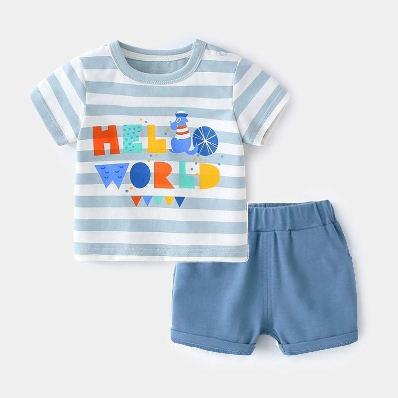High Quality Little Boys T-Shirt and Short Set OEM Service Custom Printed Clothes Child Clothes Set 100% Cotton