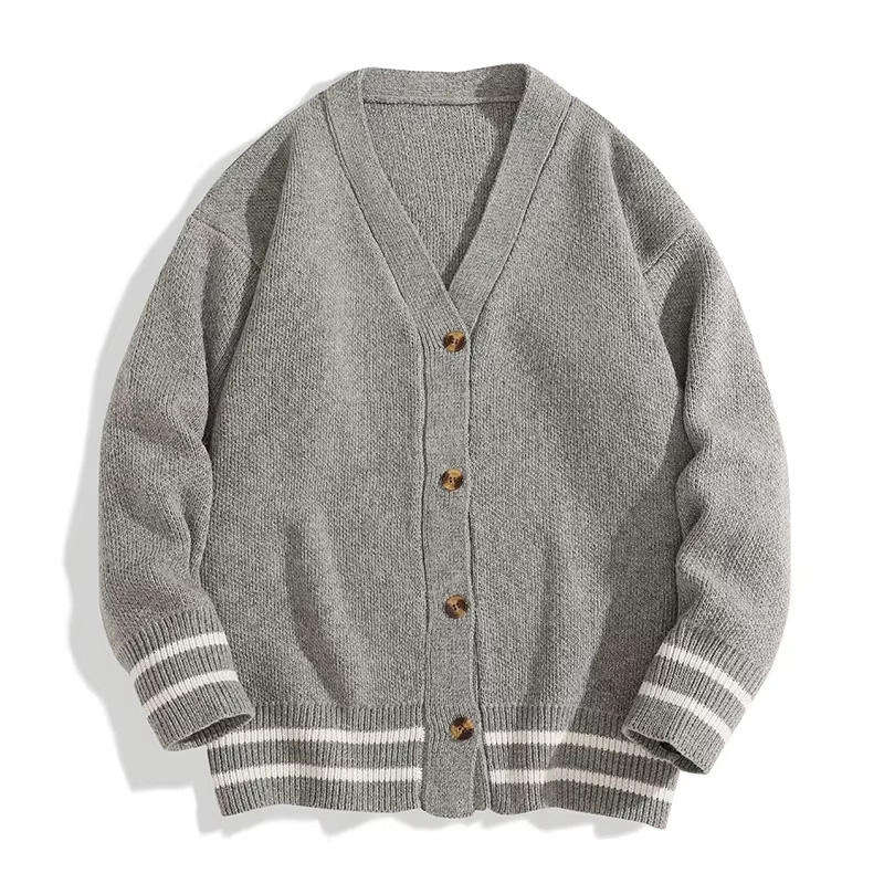 High Quality Logo Embroidery Fashion Beige Knit College Cardigans Streetwear Men Varsity Letterman Cardigan Sweater Unisex