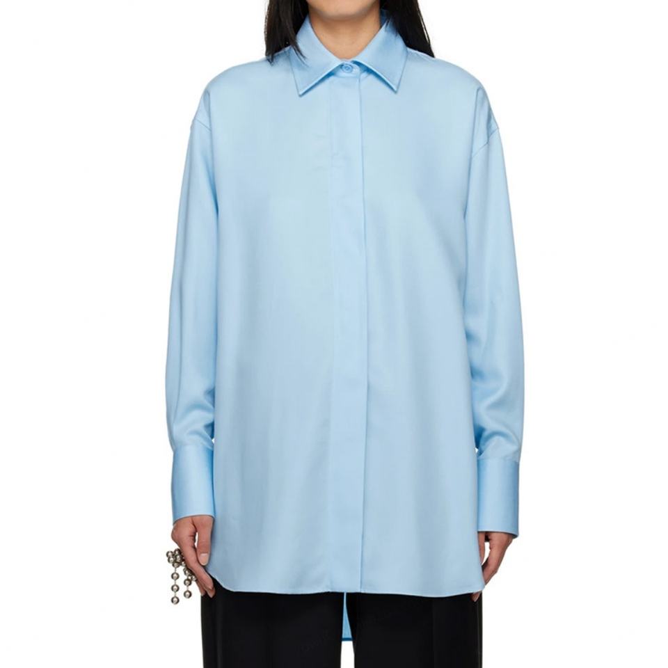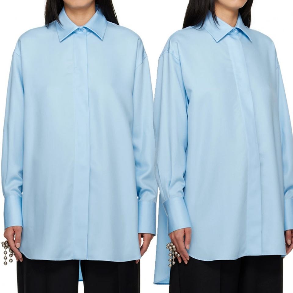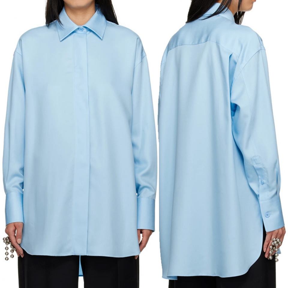 High Quality Long Sleeves 100% Lyocell Twill Button Closure Sky Blue Shirts for Women Blouse