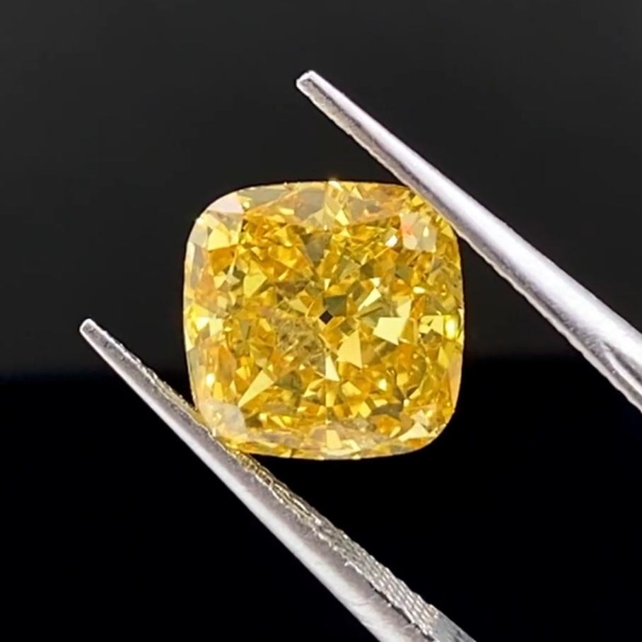 High Quality Loose CVD Diamond 5.04ct VVS2 Cushion Cut Fancy Intense Yellow Lab Grown Diamond