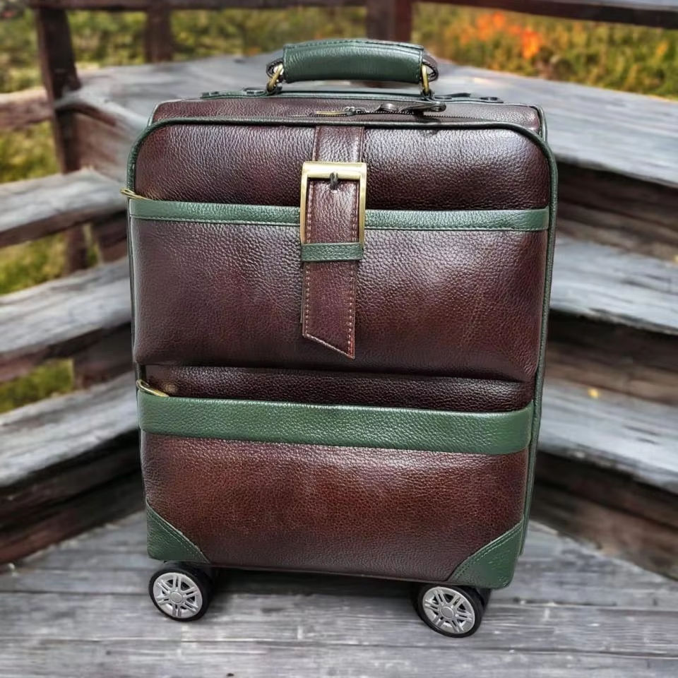 High Quality Luxurious Genuine Leather Trolley Bag Travel Easy Adjustable Multiple Pocket Chain Zipper Closure Lady Dress