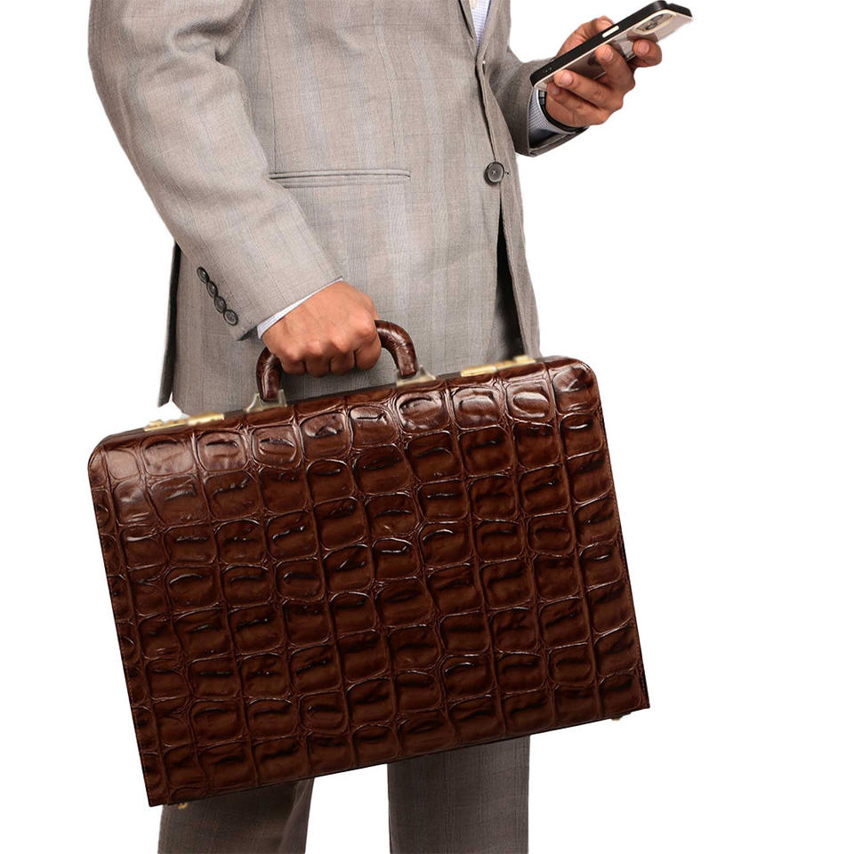 High Quality Luxury 14 Inch Crazy Horse Genuine Leather Executive Briefcase Soft White Office Business Bag Polyester Men's