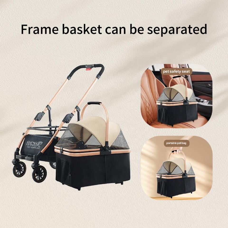 High Quality Luxury 4 Wheel Lager Capacity Twin Pet Stroller Detachable Carrier Dog Cat Carrier Outdoor Travel Trolley