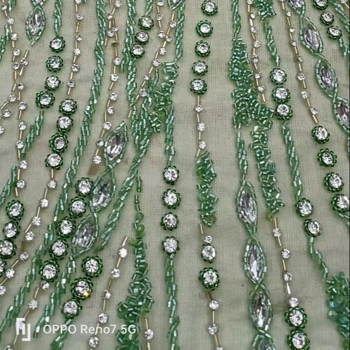 High Quality Luxury Beaded Fabric with Zircon Handmade 100% Polyester Best Price Export From Indian Supplier for Garments Making