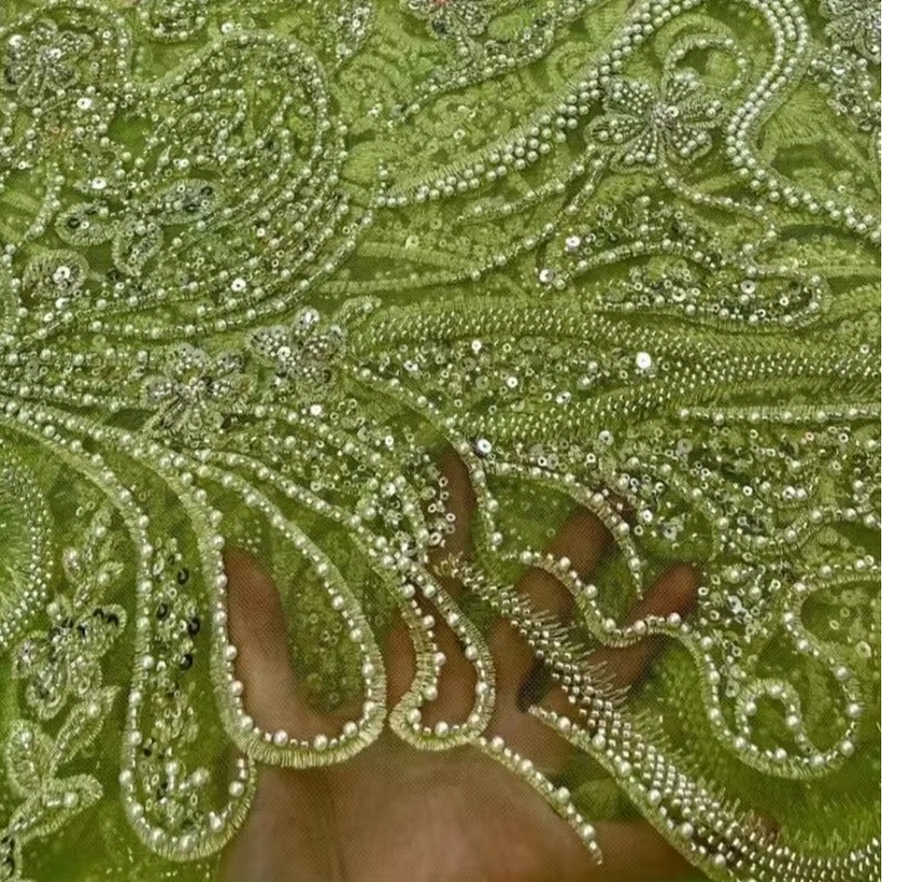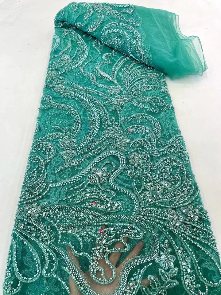 Best Price Luxury 100% Polyester Embroidered Dress for Weddings Handmade Girls Garments High Quality Beaded Fabric Zircon Sequin