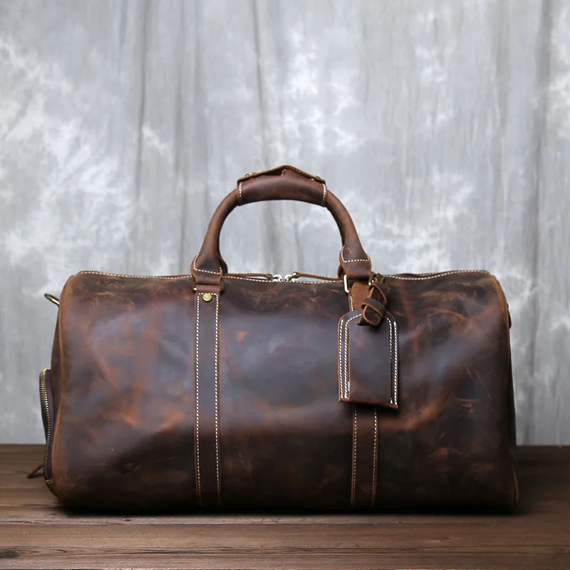 High Quality Luxury Brown Genuine Leather Duffle Bag Embossed Men's Travel Bag Real Leather Luggage Sport Style Bags