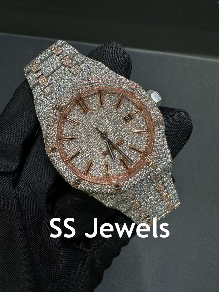 High Quality Luxury Business Analog Moissanite Iced Watch 41 MM Hip Hop Style Customizable Stainless Steel Band Glass Dial