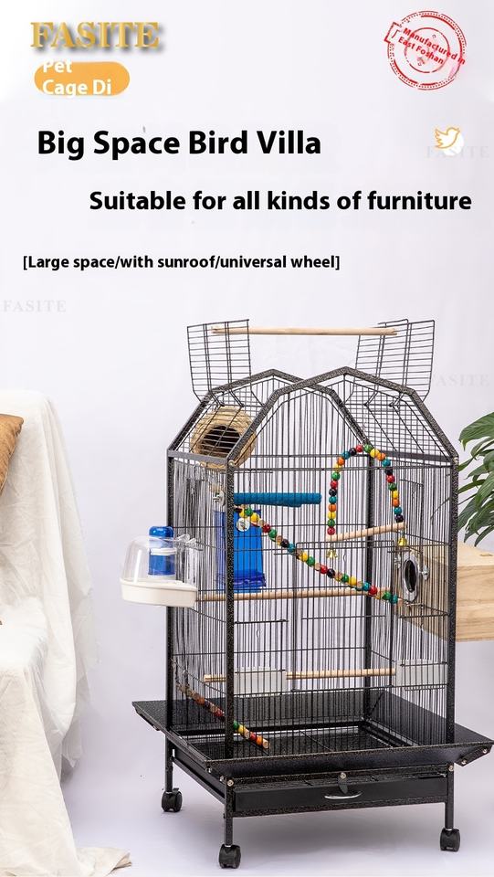 High Quality Luxury Circular Bird Cage Parrot Canary Large Animal-Printed Iron Wood Plastic Steel Cage Breathable Elegant Box