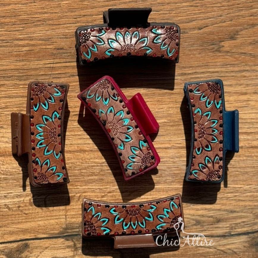 Hand Tooled Leather Women Hair Claw Clip