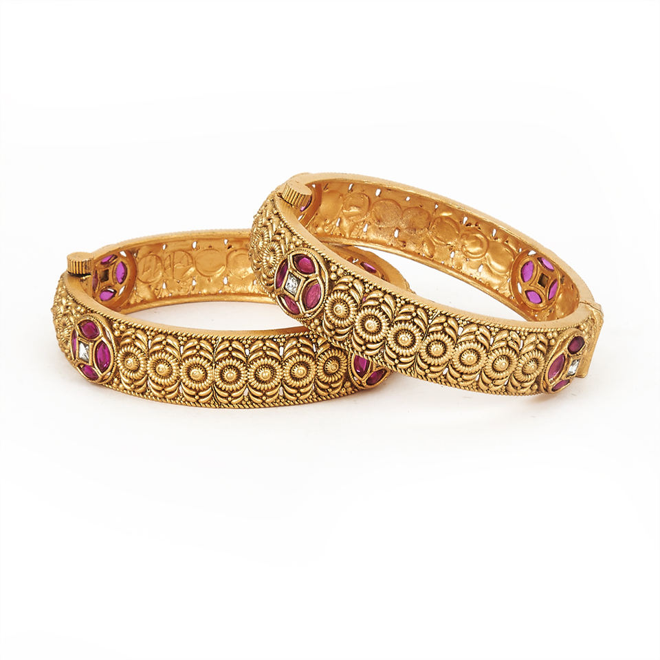 High Quality Luxury Designer Antique Openable Bangles With Matte Gold Plating 213785 for Ladies