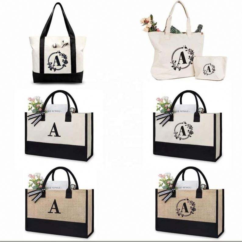 High Quality Luxury Eco-Friendly Canvas Tote Bags Custom Print Logo Letter Reusable Souvenir Wedding Gift Tote Bag