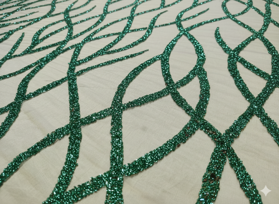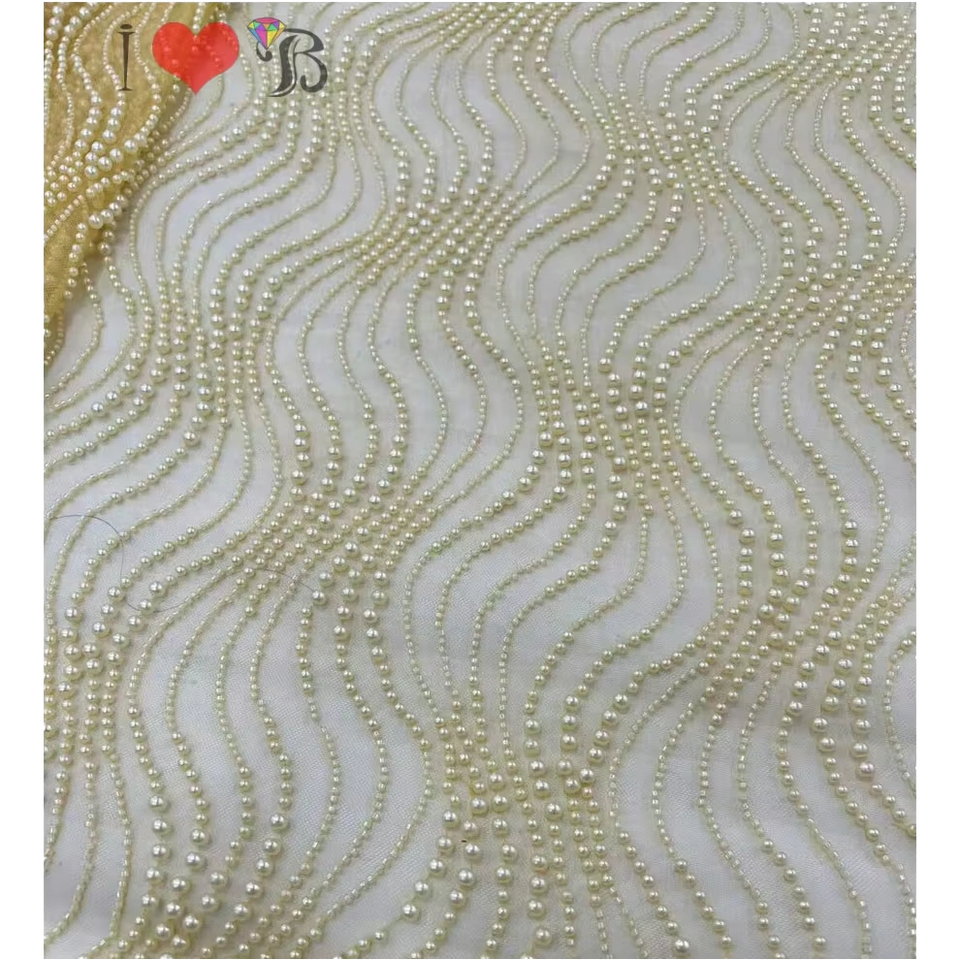 High Quality Luxury Evening Dresses Green Heavy Beads Lace Fabric Big Pearls Embroidered Bridal Lace Plaid Style Knitted