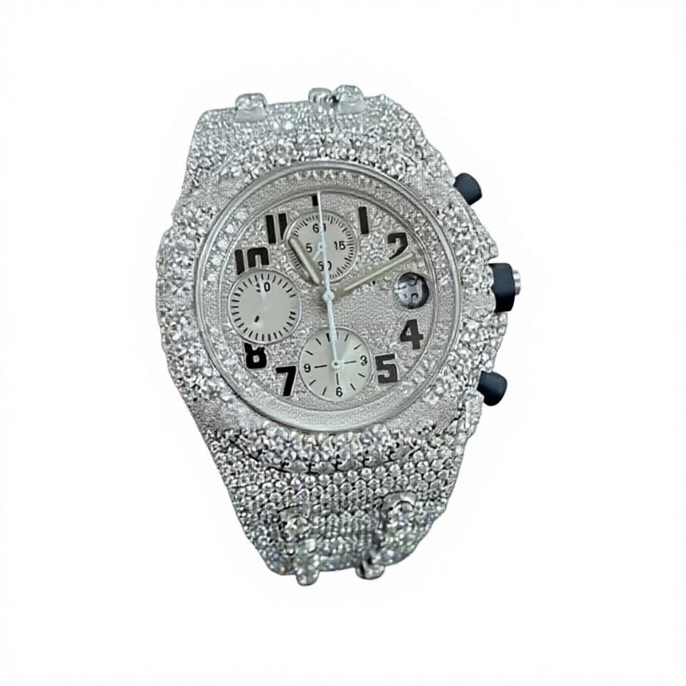 High Quality Luxury Fashion Quartz Watch Glass Crystal 10 Bar Water Resistant Stainless Steel Case Full Stones Mens Iced Pointer