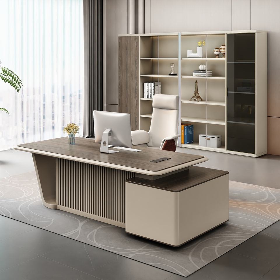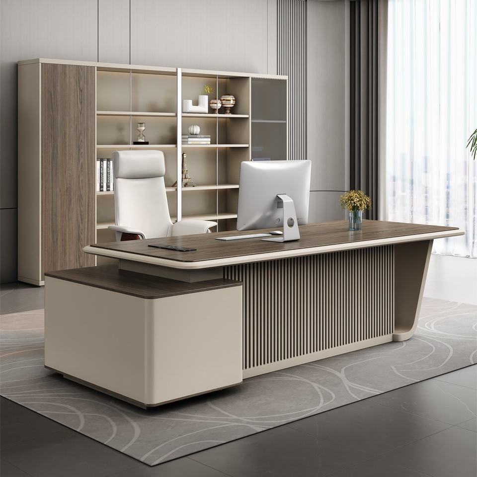 High Quality Luxury L-Shaped Executive Desk Classic Traditional Oak Office Computer Table in White for CEO or Director Office