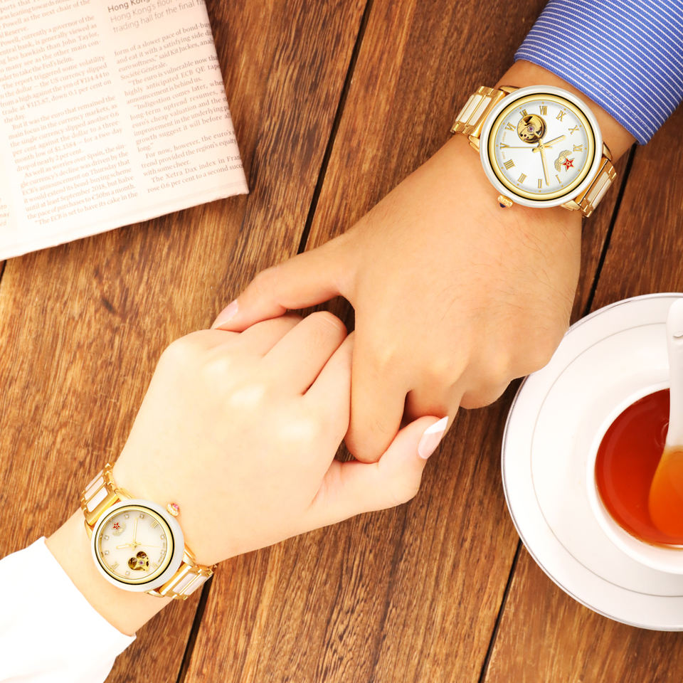 High Quality Luxury Mechanical Couple Watches Noble Design Natural White Jade Automatic Watch