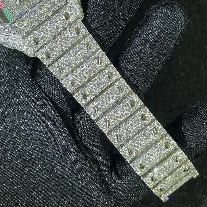 High Quality Luxury Moissanite Diamond Mechanical Watch Men Hip Hop Style Iced Plated Finish Stainless Steel Glass Case Buckle