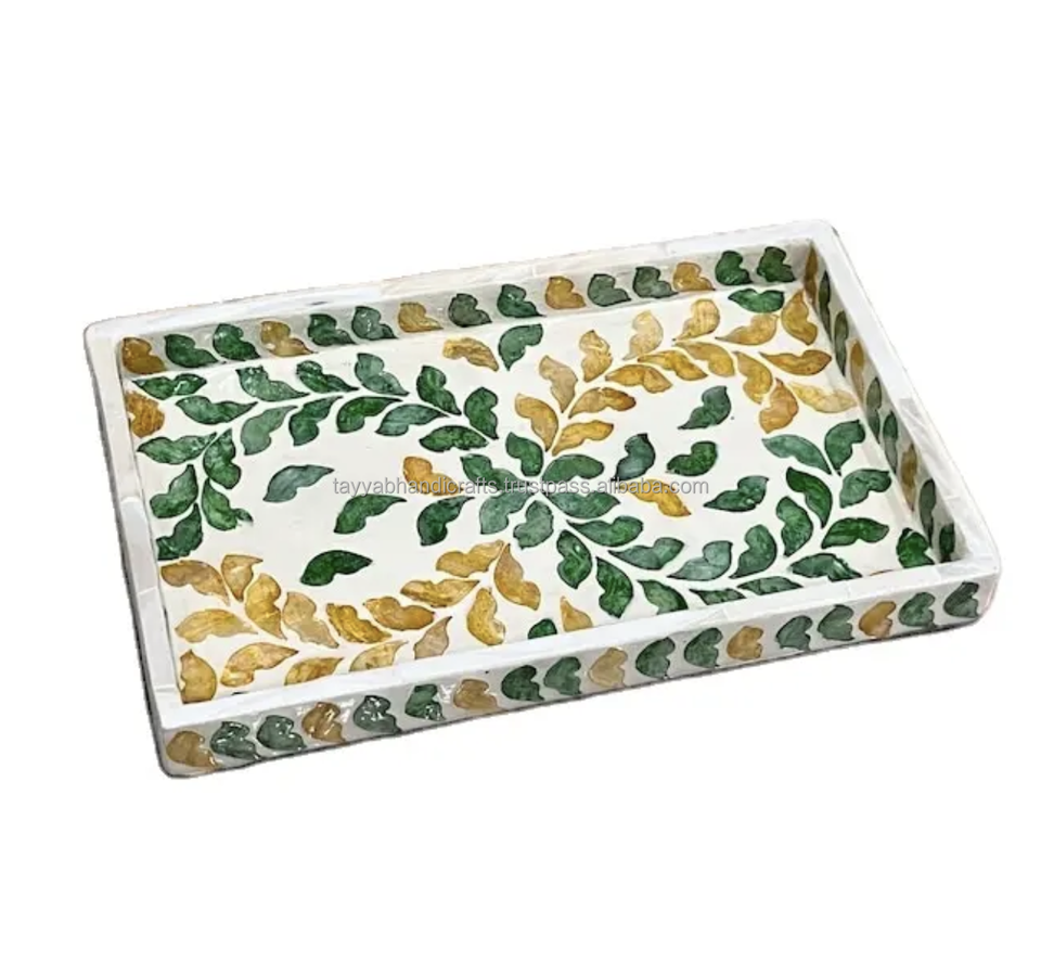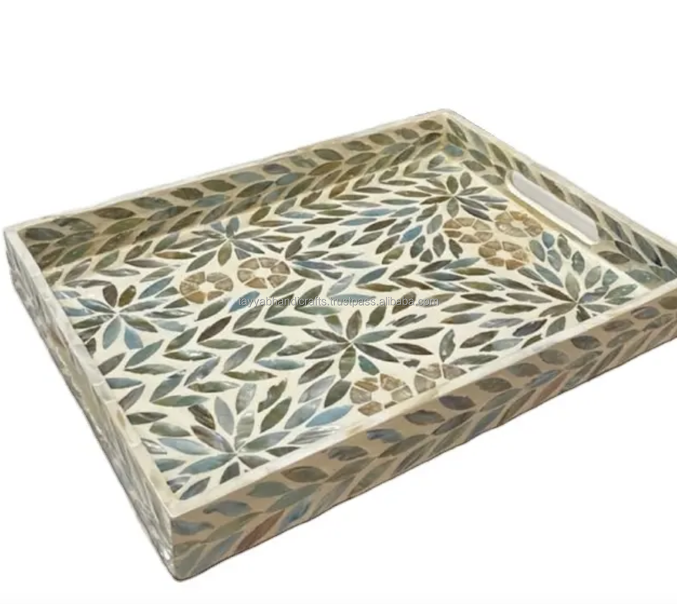 Luxury Mother of Pearl Inlay Tray Decorative Serving Trays MOP Customize Round Tray Tableware