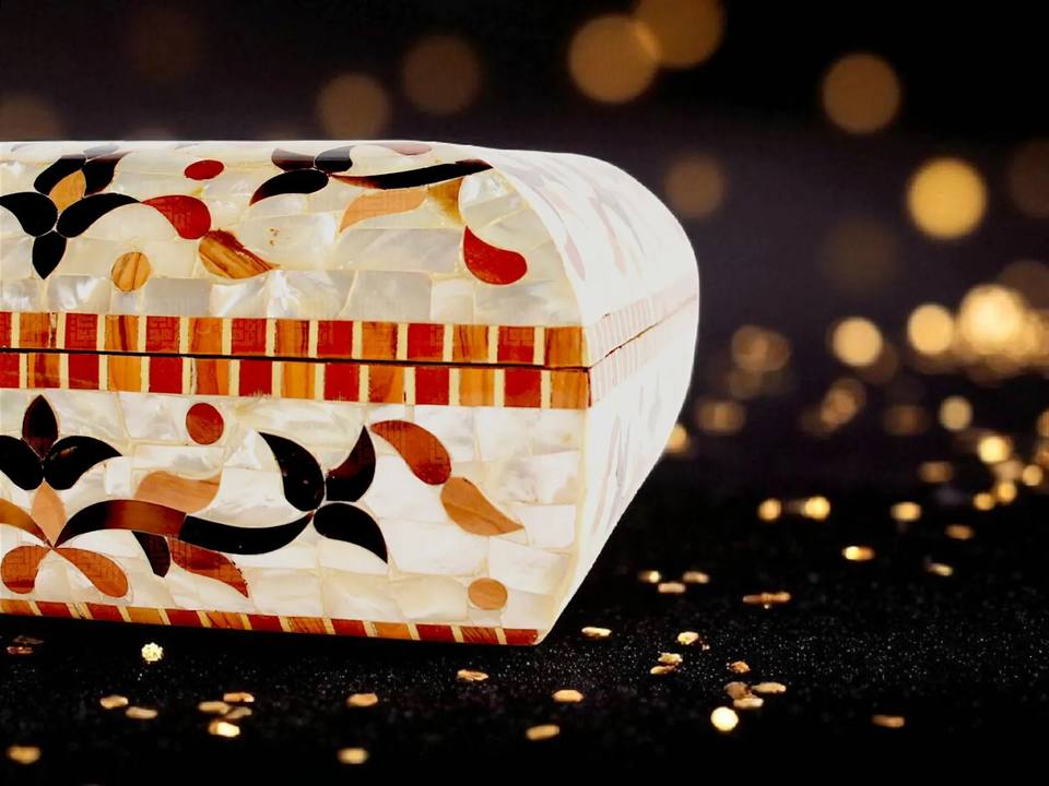 Product name:Mother of Pearl Mosaic Inlay Wooden Jewelry Box