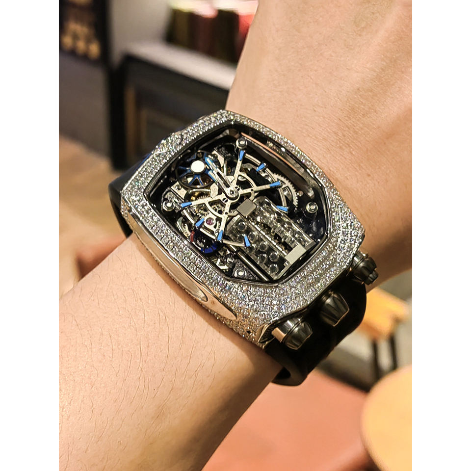 High Quality Luxury Skeleton Automatic Mechanical Men's Hip Hop Style Diamond Inlaid Iced 41mm Dial Eta Wristwatch