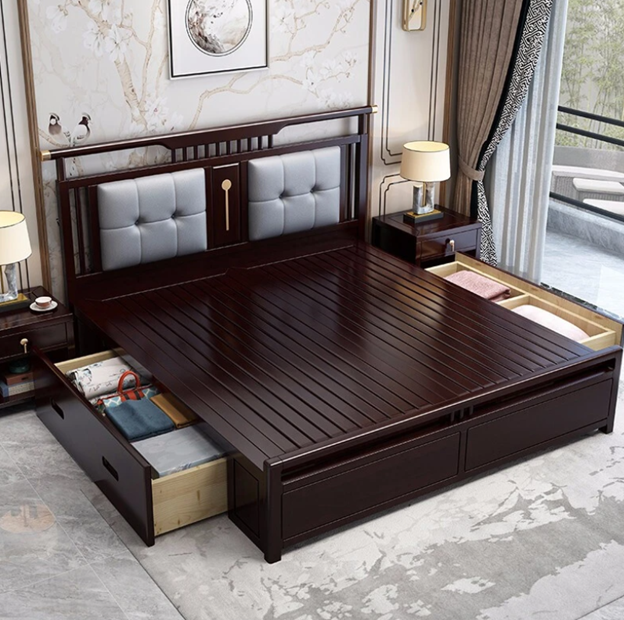 High Quality Luxury Solid Wood Queen Size Bed Wooden Bed Frames Bedroom Furniture Set
