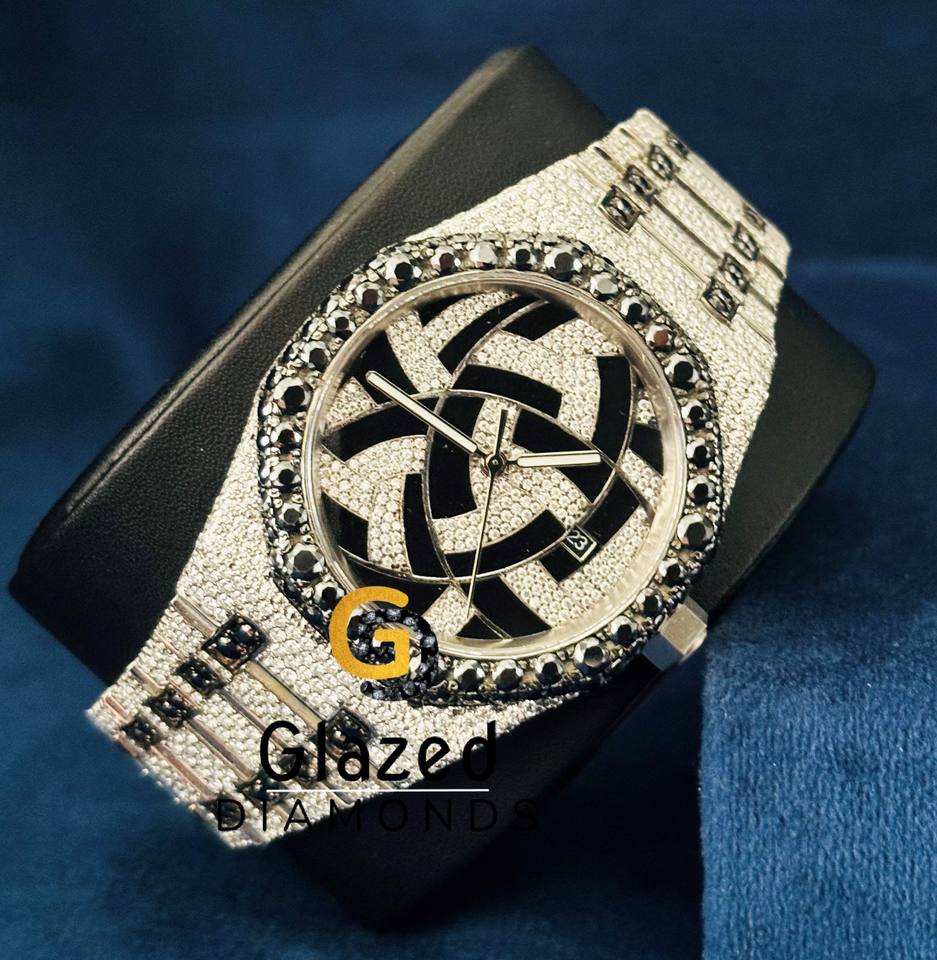 High Quality Luxury Stainless Steel Geometric Dial Black & White VVS Brilliant Round Lab Grown Diamond Watch for Men