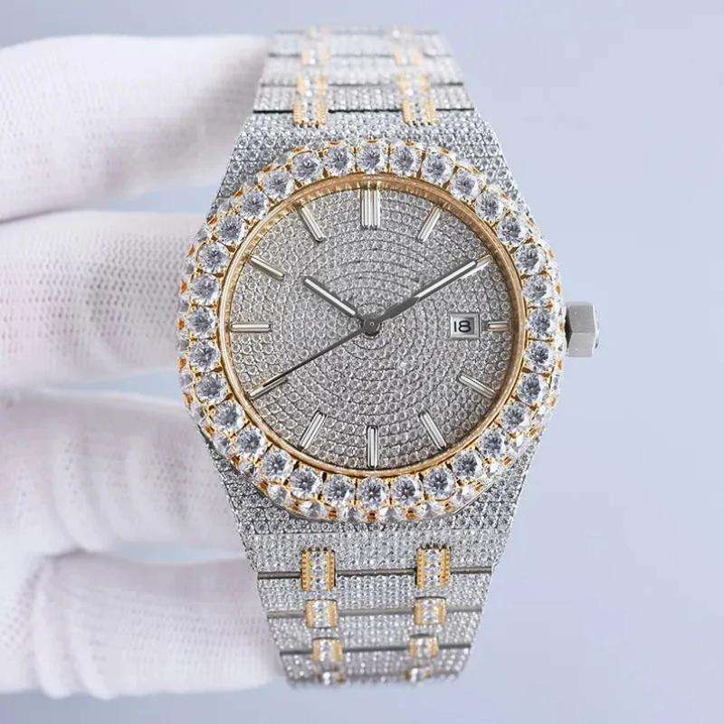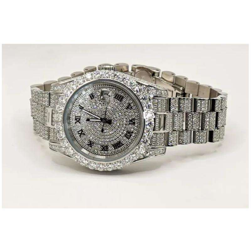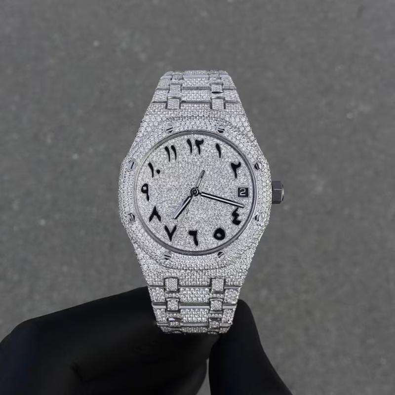 High Quality Luxury Stainless Steel Watch Automatic Moissanite Diamond Glass Wrist Watch for Men Custom Hip Hop Style Watch