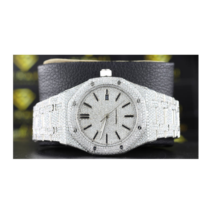High Quality Luxury Unisex Watch Sapphire Analog VVS Clarity Moissanite Diamond Stainless Steel Band Quartz Movement Automatic