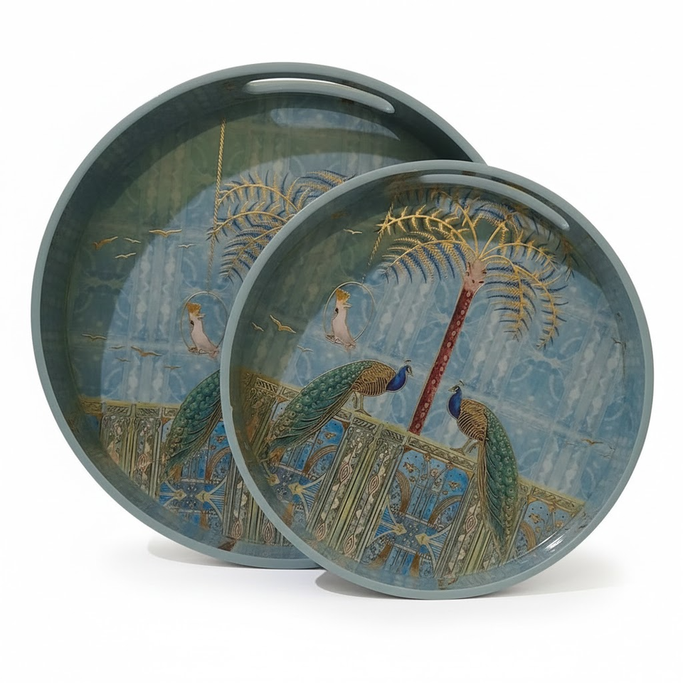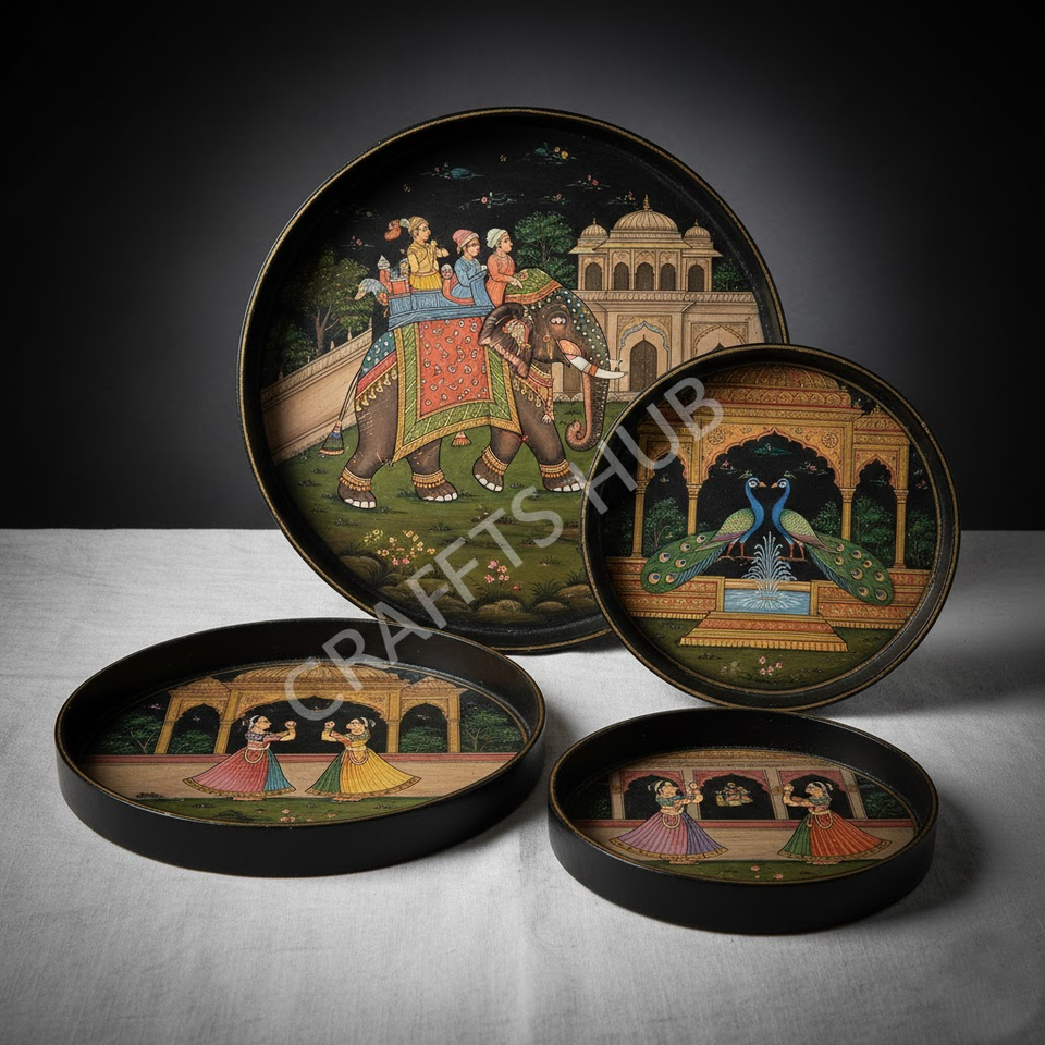 High Quality Handmade MDF Wooden Enamel Round Serving Tray Set Multi-Color Premium Decorative Tea Coffee Elegant Big Tray