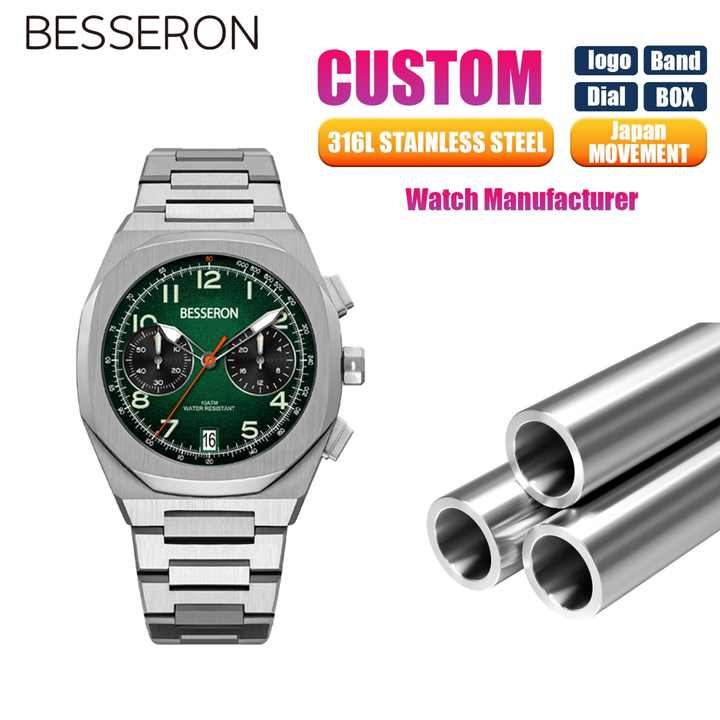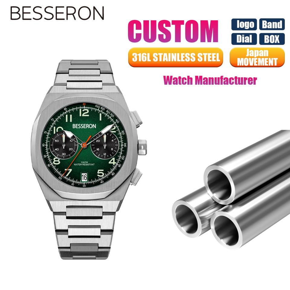 High Quality Man's Quartz Analog Watch Sapphire Crystal Water Resistant 5ATM Japan Movement Custom Stainless Steel Band Luxury