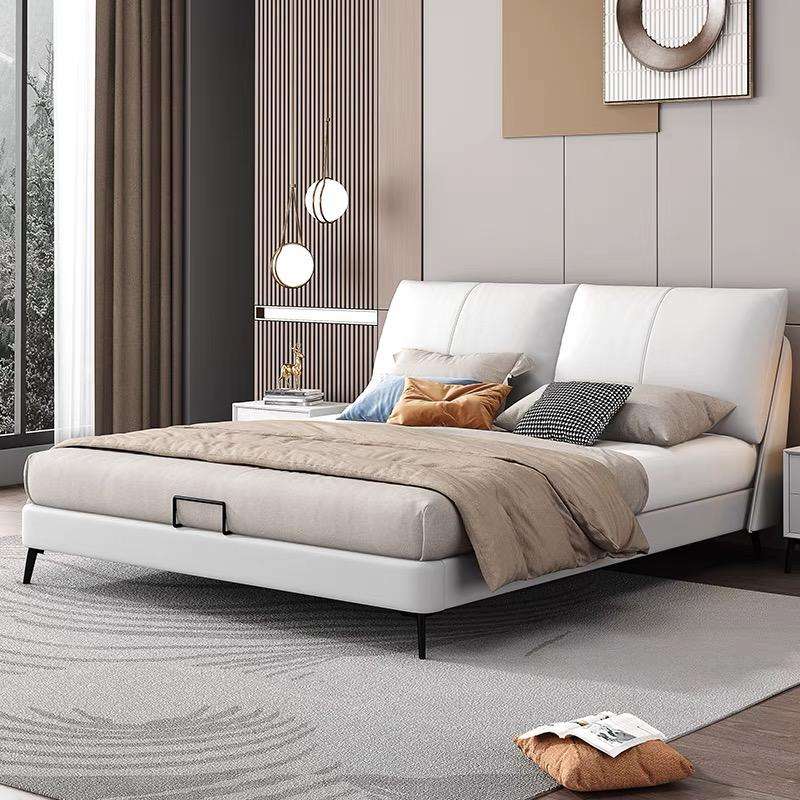 Double Size Bed with Storage Features Wood Rattan Beige Headboard 162x9x137 LED Nightstands and Drawers