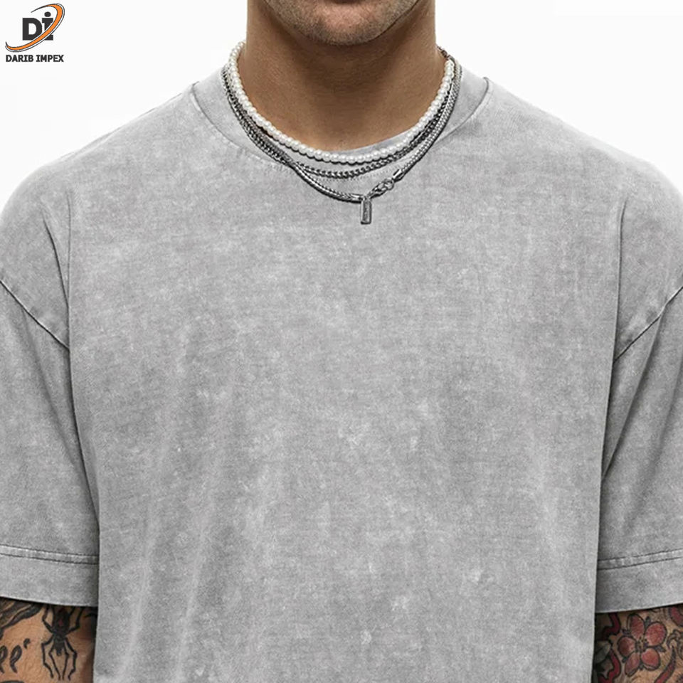 High Quality Custom Men's Casual Acid Wash T-Shirt Drop Sleeve Plain Design by Manufacturer