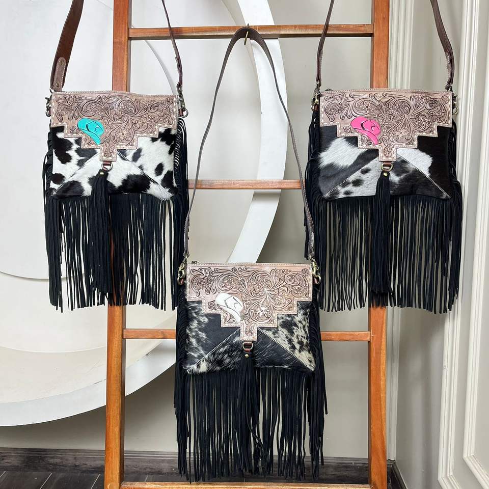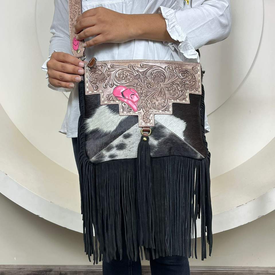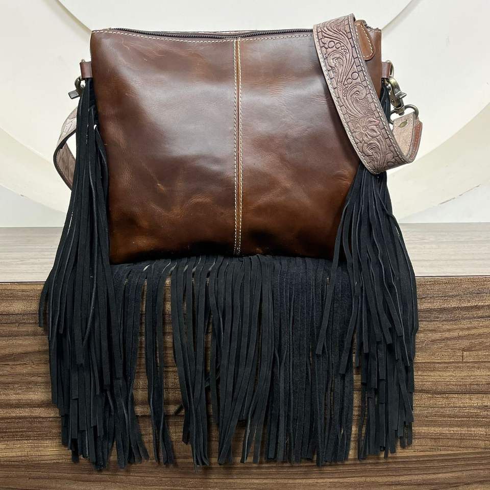 High Quality Manufacturers Hand Tooled Leather Fringe Crossbody Bags Large Capacity Genuine Cowhide Leather Women's Shoulder Bag