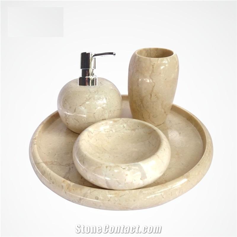 High Quality Marble Bathroom Accessory Set 5-Piece - Soap Dispenser Toothbrush Holder Tumbler Soap Dish Cotton Bud Box and Tray