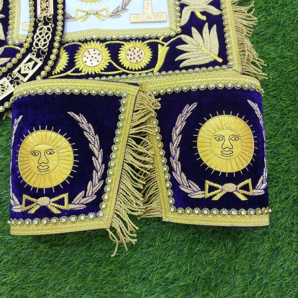 High-Quality Masonic Regalia Set Handcrafted Apron Collar & Accessories with Embroidered Gold Detailing