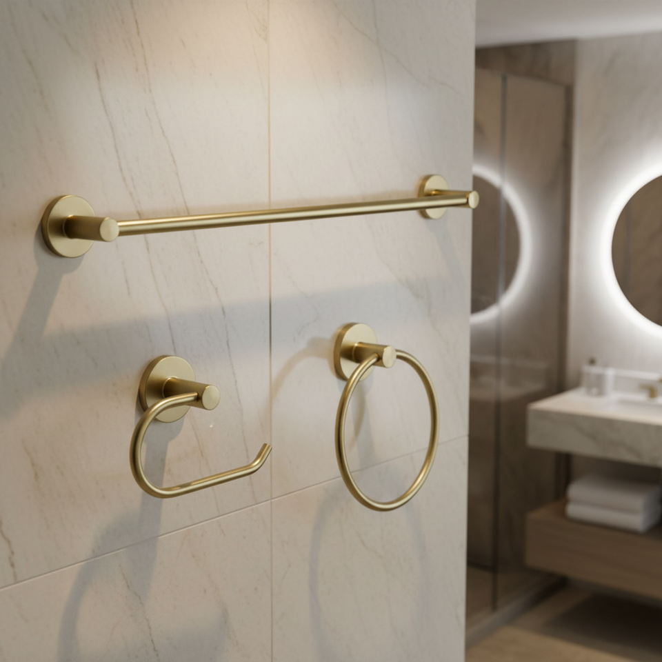 High Quality Matte Gold Bathroom Hardware Accessory Set 3-Piece for Home and Hotel Bathroom