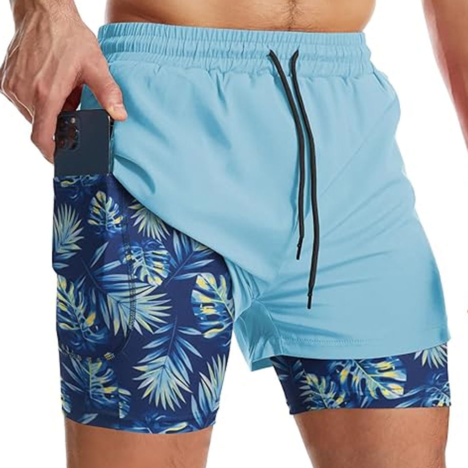 High Quality Men 2 In 1 Running Shorts Compression Liner Fitness Gym Shorts Phone Pocket Wholesale Bulk